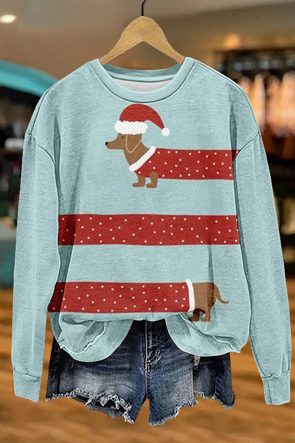 Cute Christmas Dachshund Print Sweatshirt